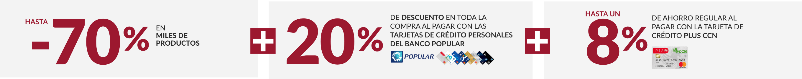 20% de descuento en toda tu compra al pagar con tus tarjetas de crédito del Banco Popular.