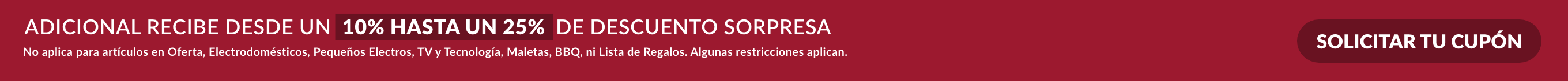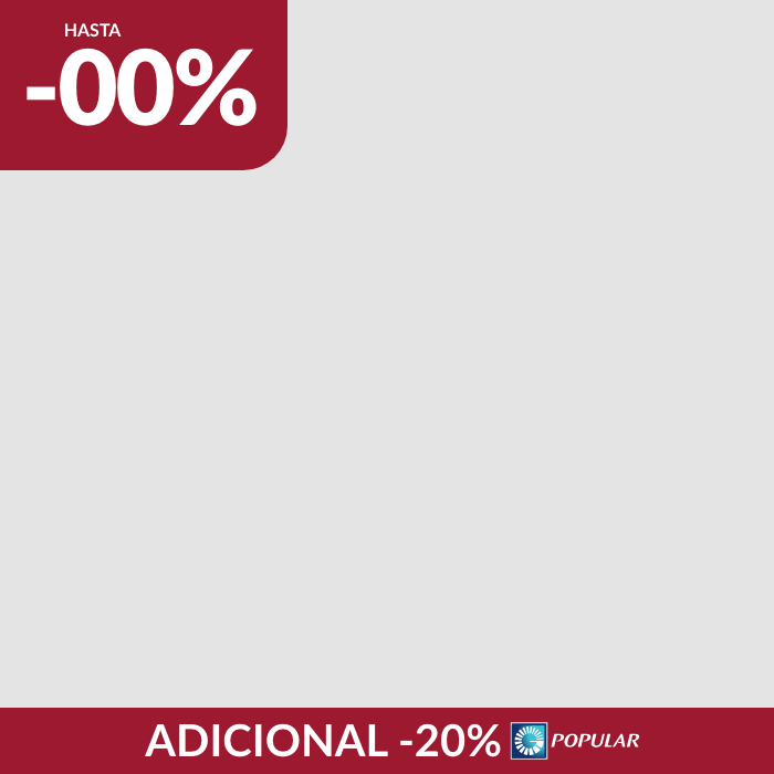 Promoción válida en tienda física y online desde el viernes 25 hasta el domingo 27 de abril a las 11:59 p.m. Al pagar con tus tarjetas de crédito del Banco Popular obtendrás un 20% de descuento en toda la tienda. Tope de descuento por cliente RD$10,000.00. Descuento sólo aplica con las Tarjetas de Crédito personales, Popular Bank o Cuotas Popular. Cuotas Popular no aplica en compras online. Para aplicar el descuento debe pagar la totalidad de la compra con su tarjeta de crédito personal de Banco Popular. Para aplicar el descuento en la web debe introducir los primeros 6 dígitos de su tarjeta de crédito en el recuadro identificado previo a procesar el pago. No participan tarjetas de débito ni comerciales: Corporativa, Empresarial, Flotilla, Impulsa.