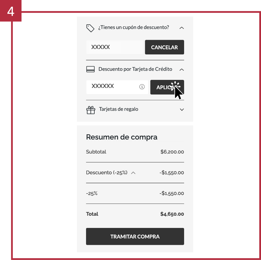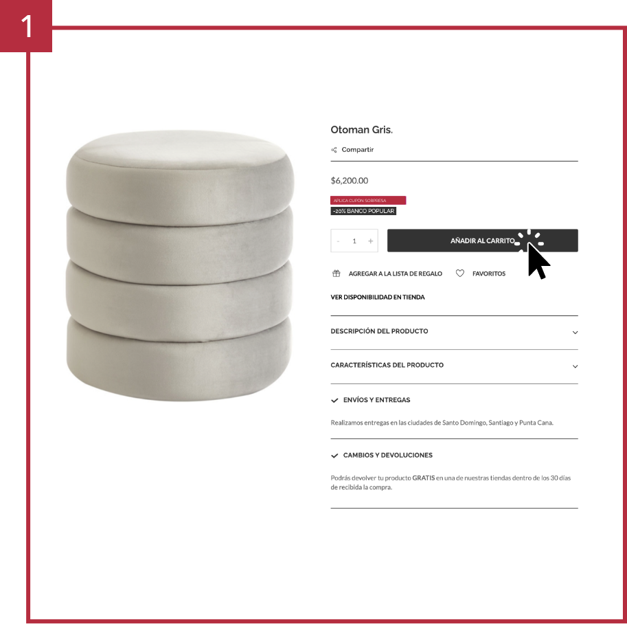 Para aplicar el descuento de Tarjeta de Crédito del Banco Popular y el cupón de descuento sorpresa en la web debes seguir los siguientes pasos: