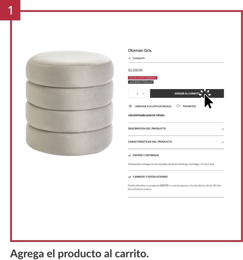 Al pagar con tus tarjetas de crédito del Banco Popular obtendrás un 20% de descuento adicional en toda tu compra. Descuento aplicado al instante. Tope de descuento RD$10,000 por cliente. Promoción exclusiva online válida solo por el miércoles 10 de septiembre de 2025. Para aplicar el 20% de descuento de las Tarjetas de Crédito Popular y Popular Bank debes de colocar los 6 primeros dígitos de tu Tarjeta al momento de tramitar la compra. Al pagar con la tarjeta de crédito Plus CCN recibes hasta un 8% de ahorro adicional. No participan tarjetas de débito ni comerciales: Corporativa, Empresarial, Flotilla, Impulsa. La promoción no aplica para compras al por mayor ni Lista de Regalos.