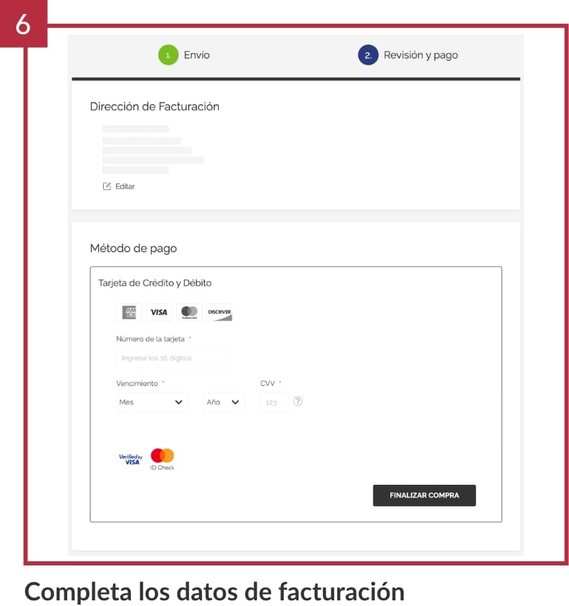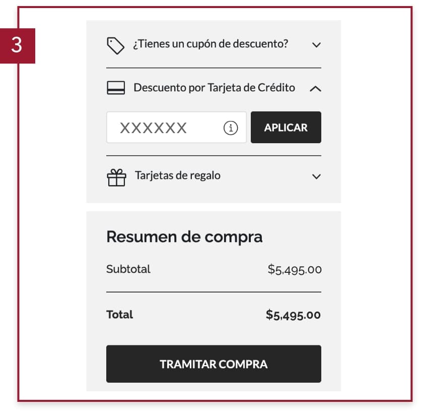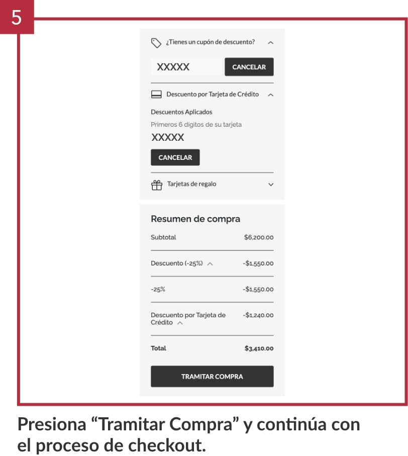 Presiona “tramitar compra” y continúacon el proceso de checkout.