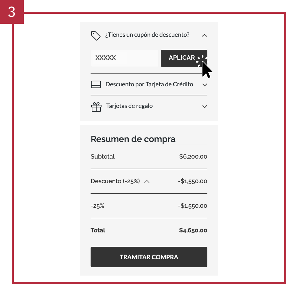 Introduce tu cupón de descuento en el recuadro y presiona “Aplicar”.