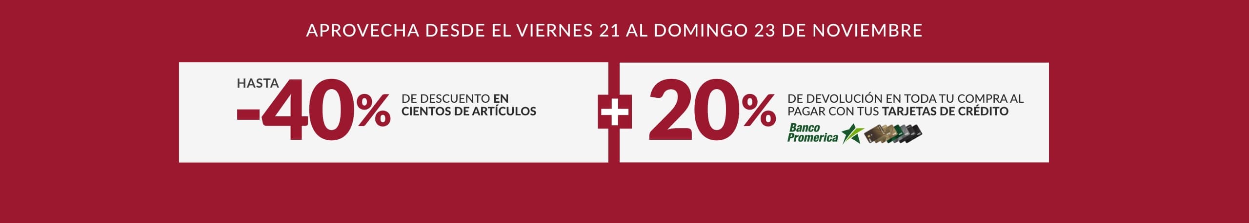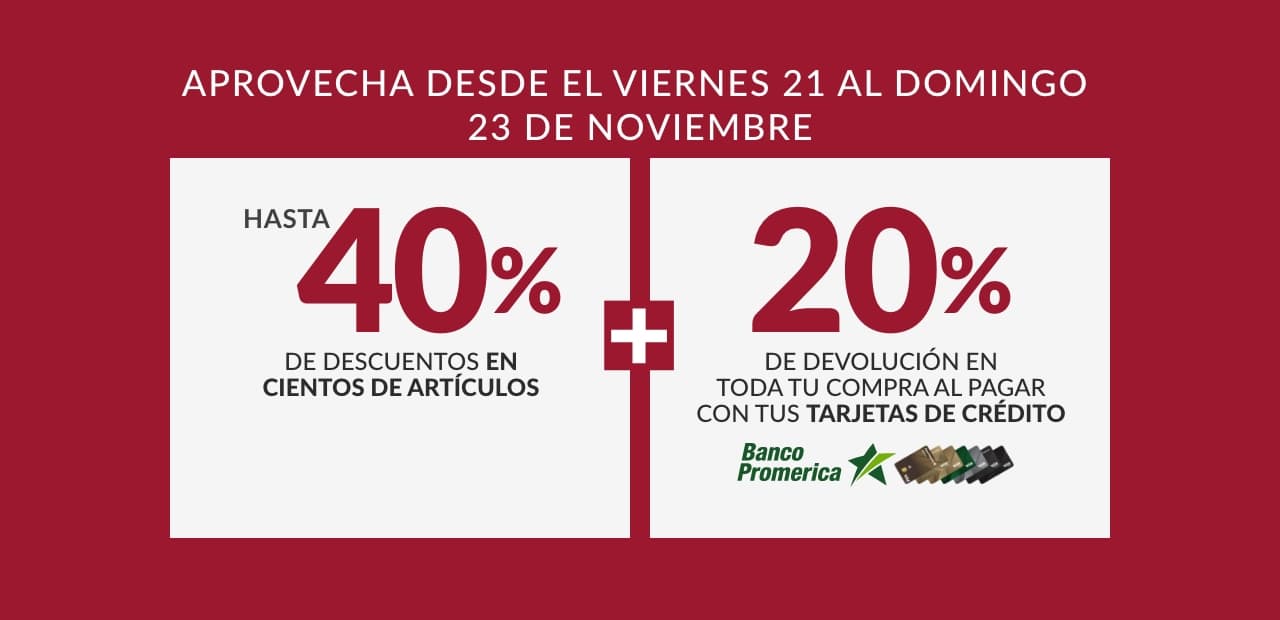 20% de devolución en toda la compra al pagar con las Tarjetas de Crédito Promerica.